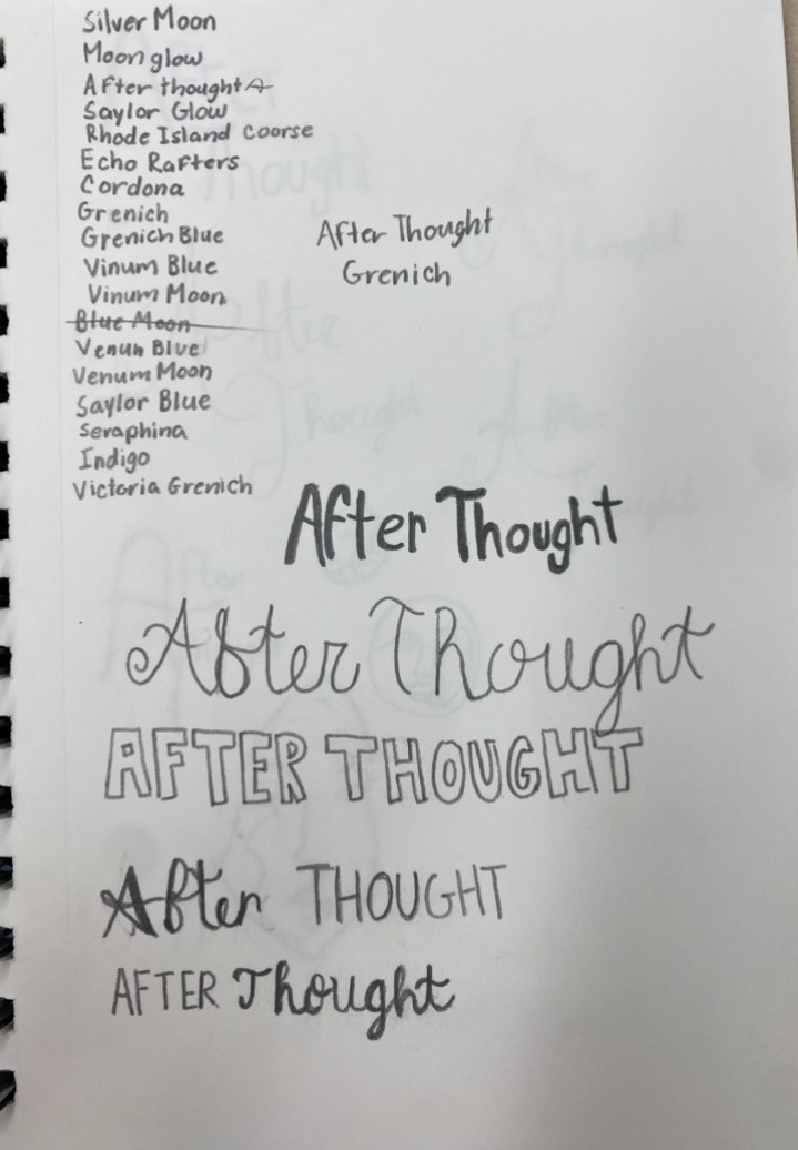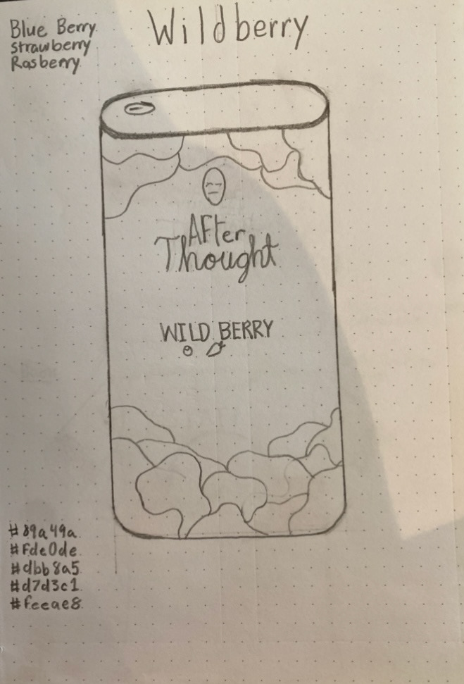 Like most projects, after creating an overall mood for the project I was looking to design, I started sketching what my logo would look like. The thin font and line work is something I am very used to creating in my designs. I chose the name After Thought, after a lot of different choices and thinking about it for a while. I thought with it being an alcoholic beverage that the name would be almost ironic.