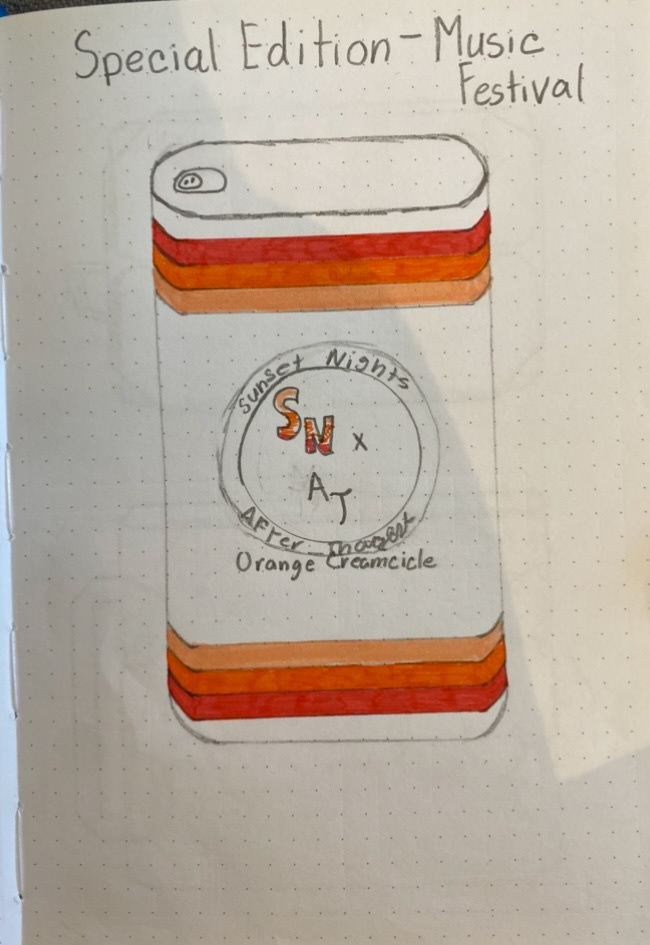 Once the logo was complete, I then moved onto creating sketches for the design of the beverage cans as well as for the special edition beverage that I based on another project I did called Sunset Sights.